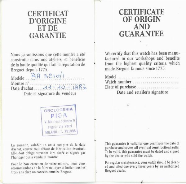 BREGUET CLASSIQUE REF. BA3210 ANNO 1986