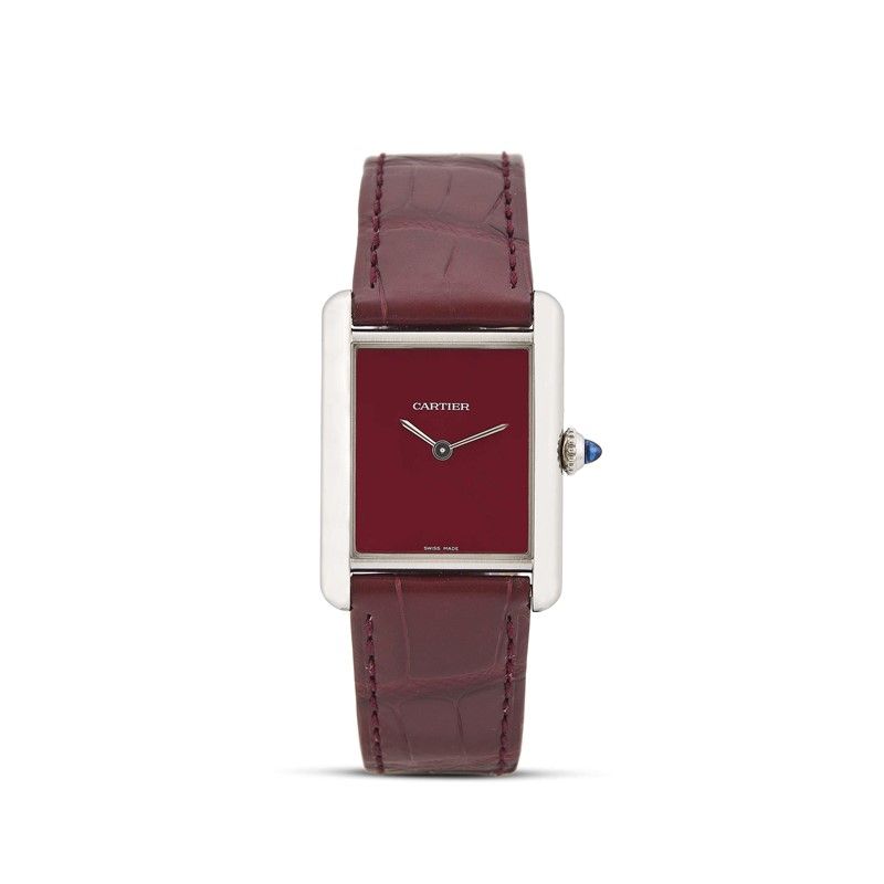 CARTIER TANK BURGUNDY REF. 4323 STAINLESS STEEL WRISTWATCH, 2022
