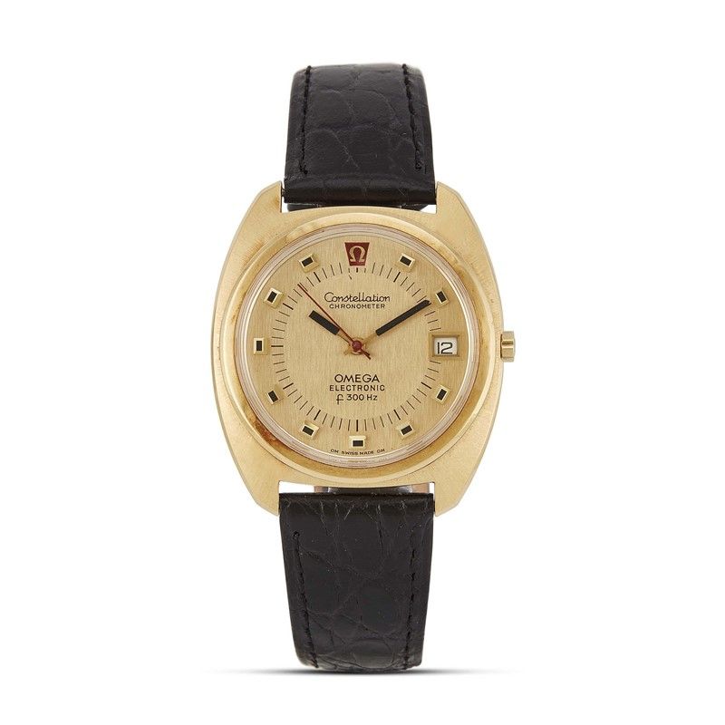 OMEGA CONSTELLATION ELECTRONIC F300HZ REF. 198.002 YELLOW GOLD WRISTWATCH, 1976