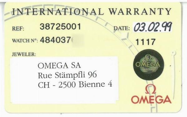 OMEGA SPEEDMASTER PROFESSIONAL MOONWATCH REF. 3872.50.01 N. 484037XX ANNO 1999