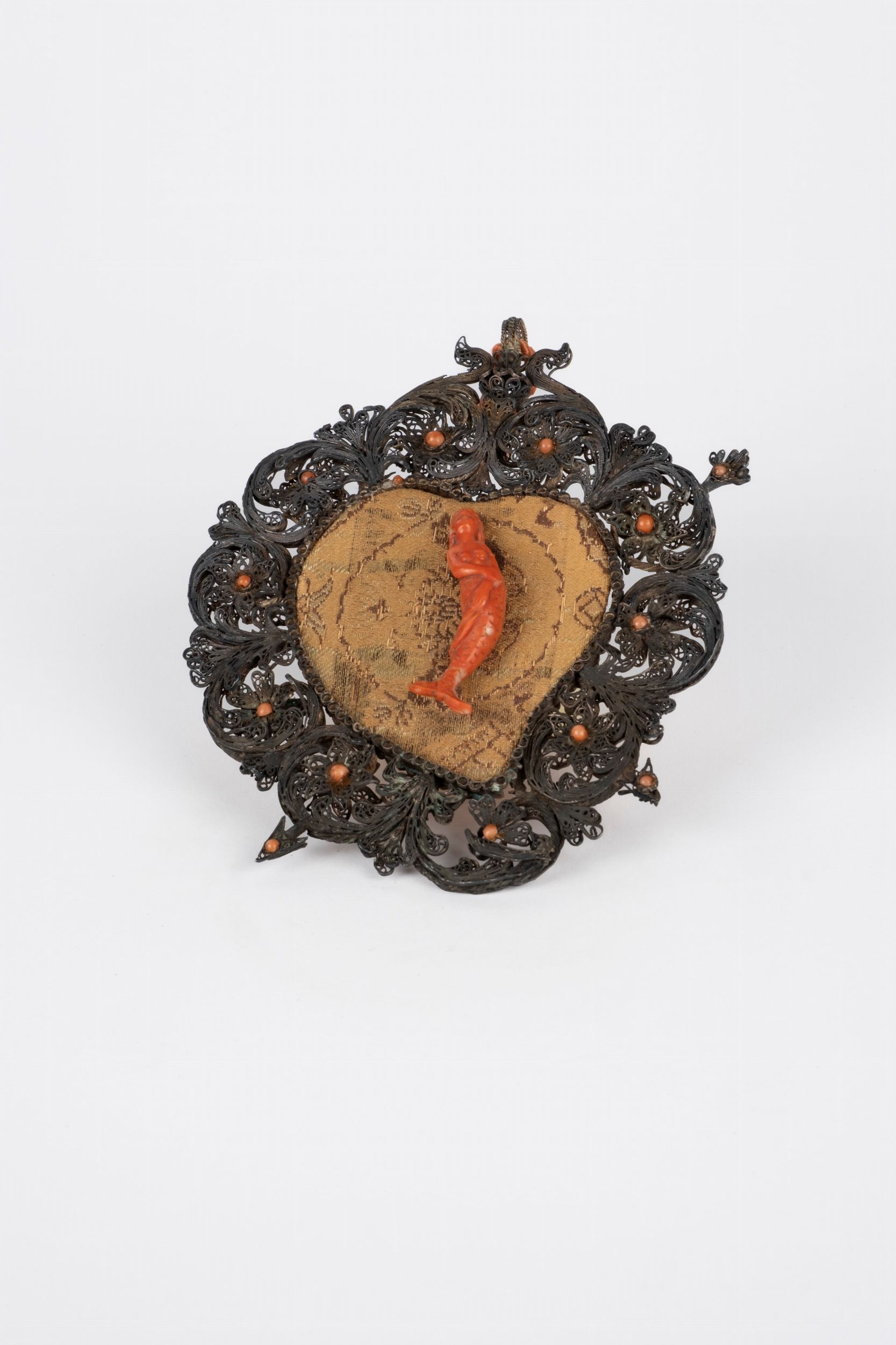 ¤Cornice in filigrana d'argento e corallo. Sicilia, secolo XVIII/XIX
