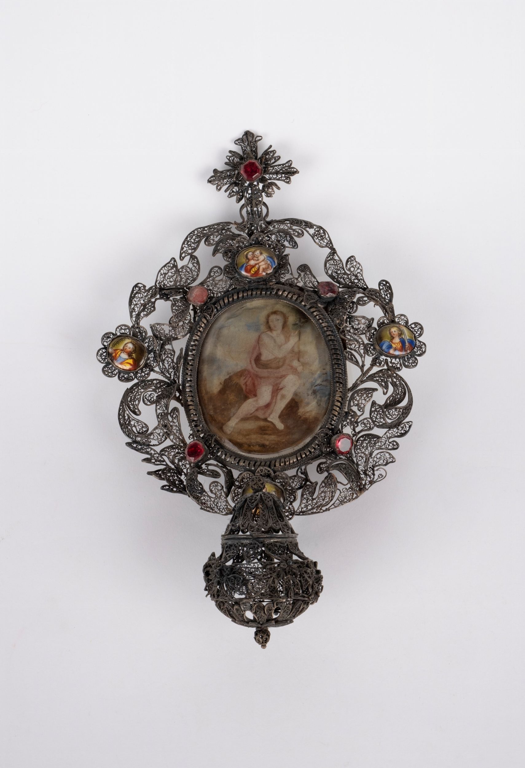 con smalti e paste vitree, centrata da figura di San Giovanni Battista