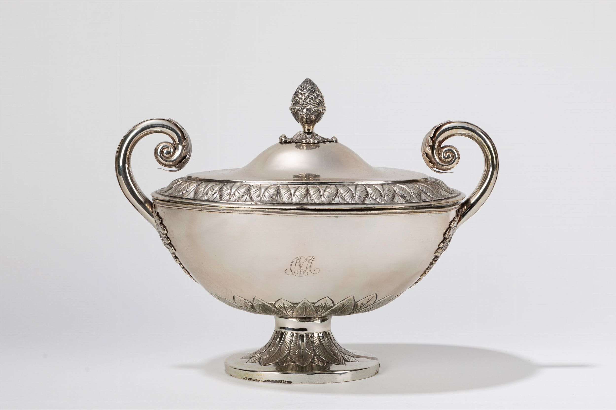 Grande zuppiera biansata in argento. Torino, primo quarto del secolo XIX, saggiatore [..]
