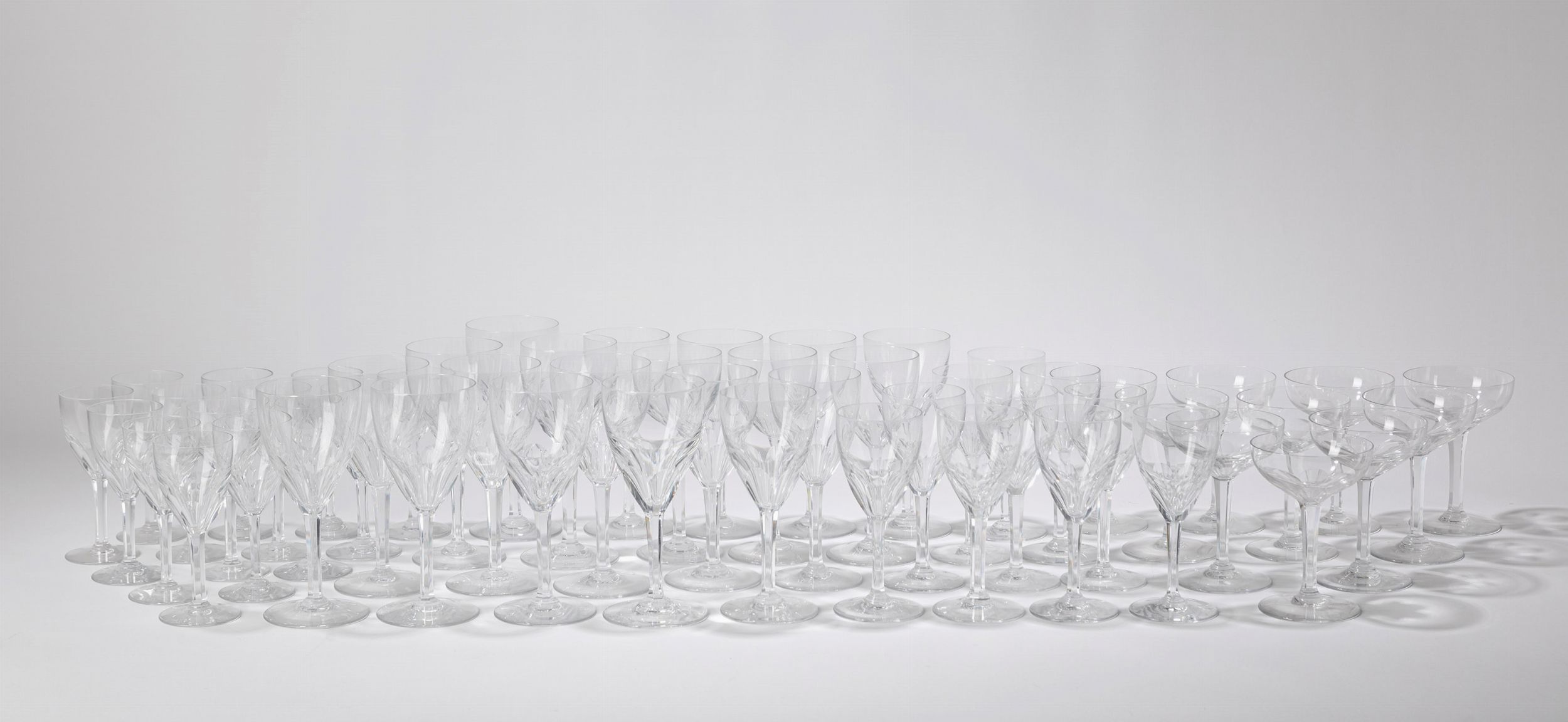 Servizio di 71 bicchieri Baccarat, composto da 15 calici acqua, 15 calici vino rosso, [..]
