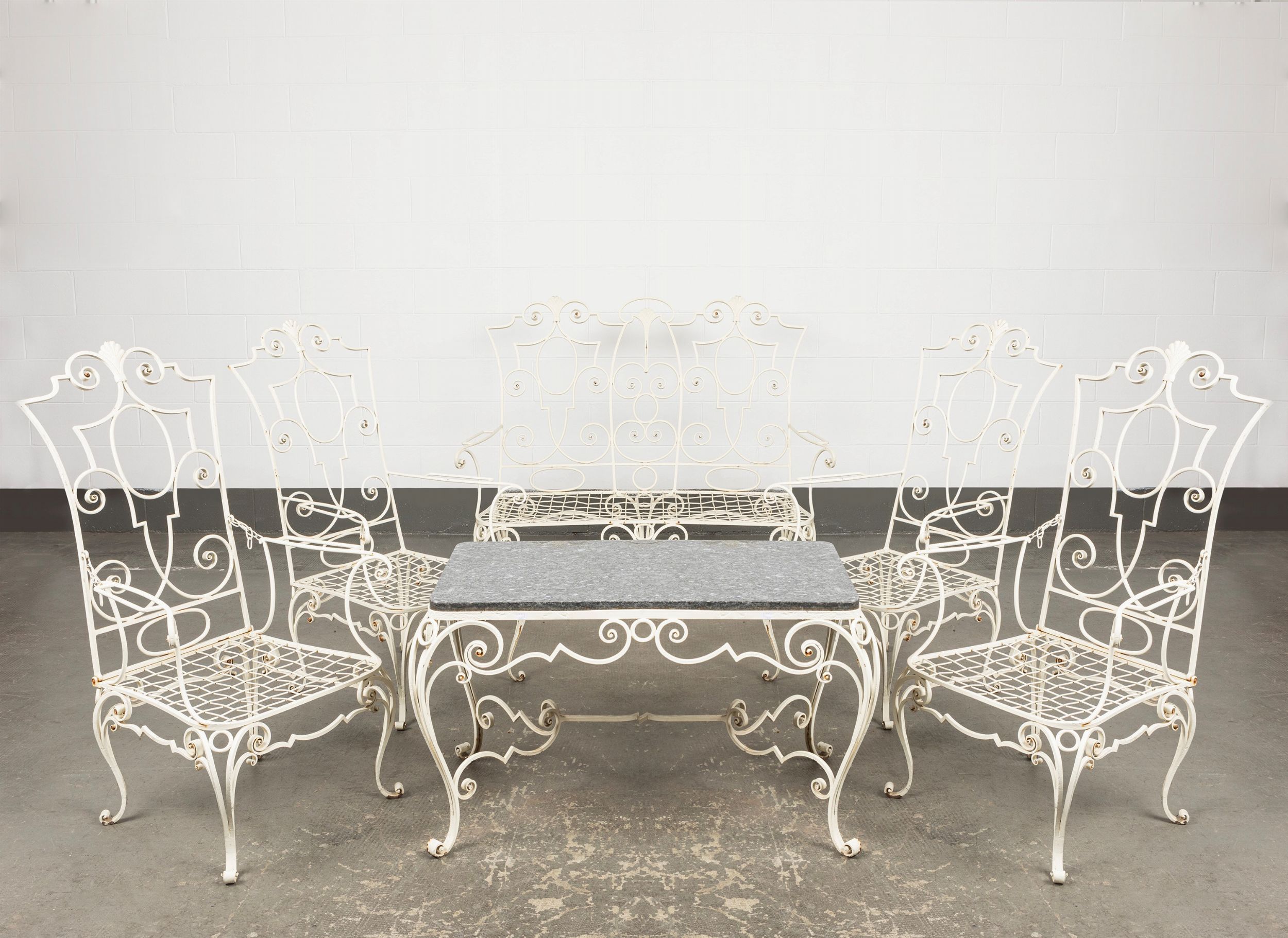 Suite da giardino in ferro battuto dipinto di bianco