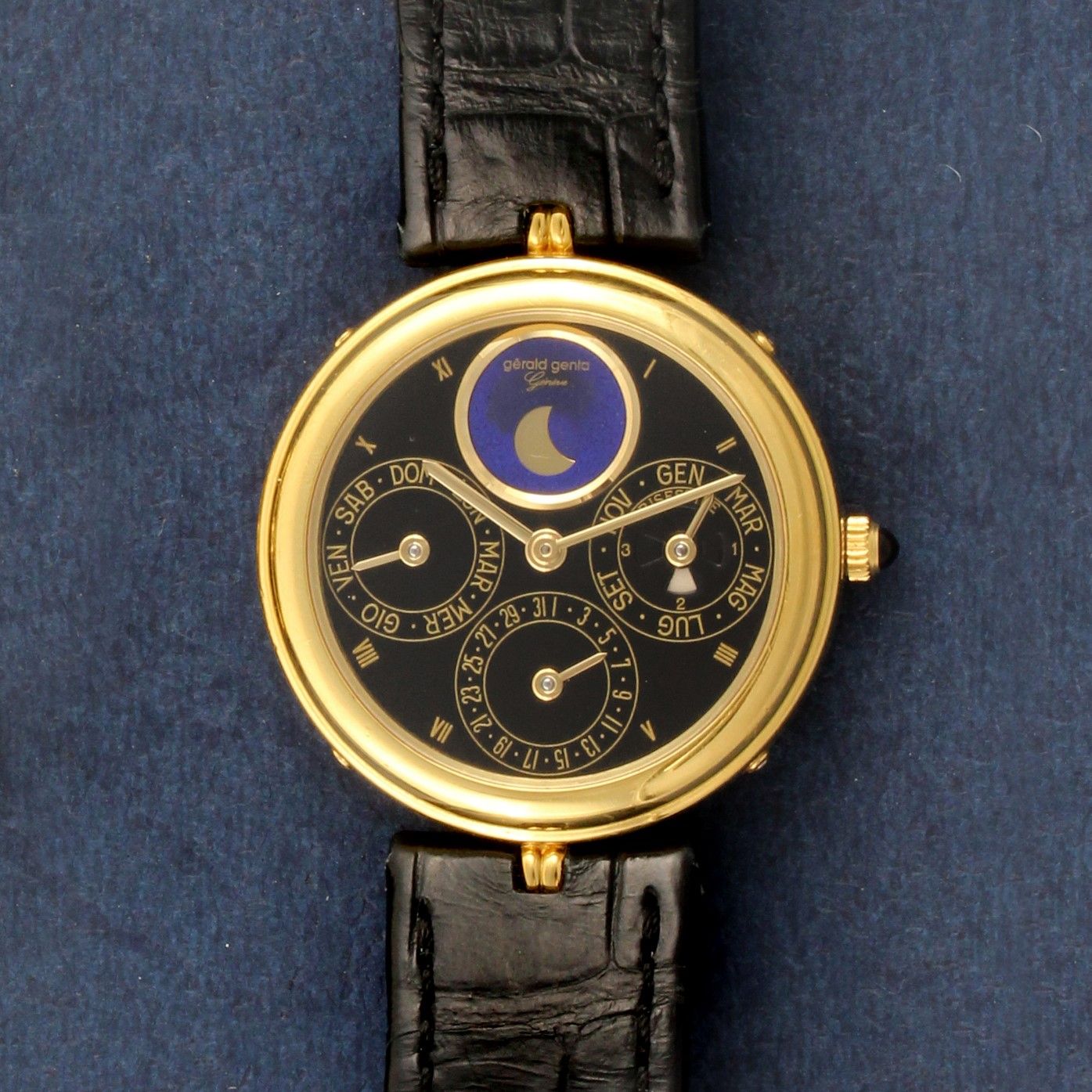 Quadrante: Nero con indicazione fasi lunari e calendario perpetuo. Sfere a bastone