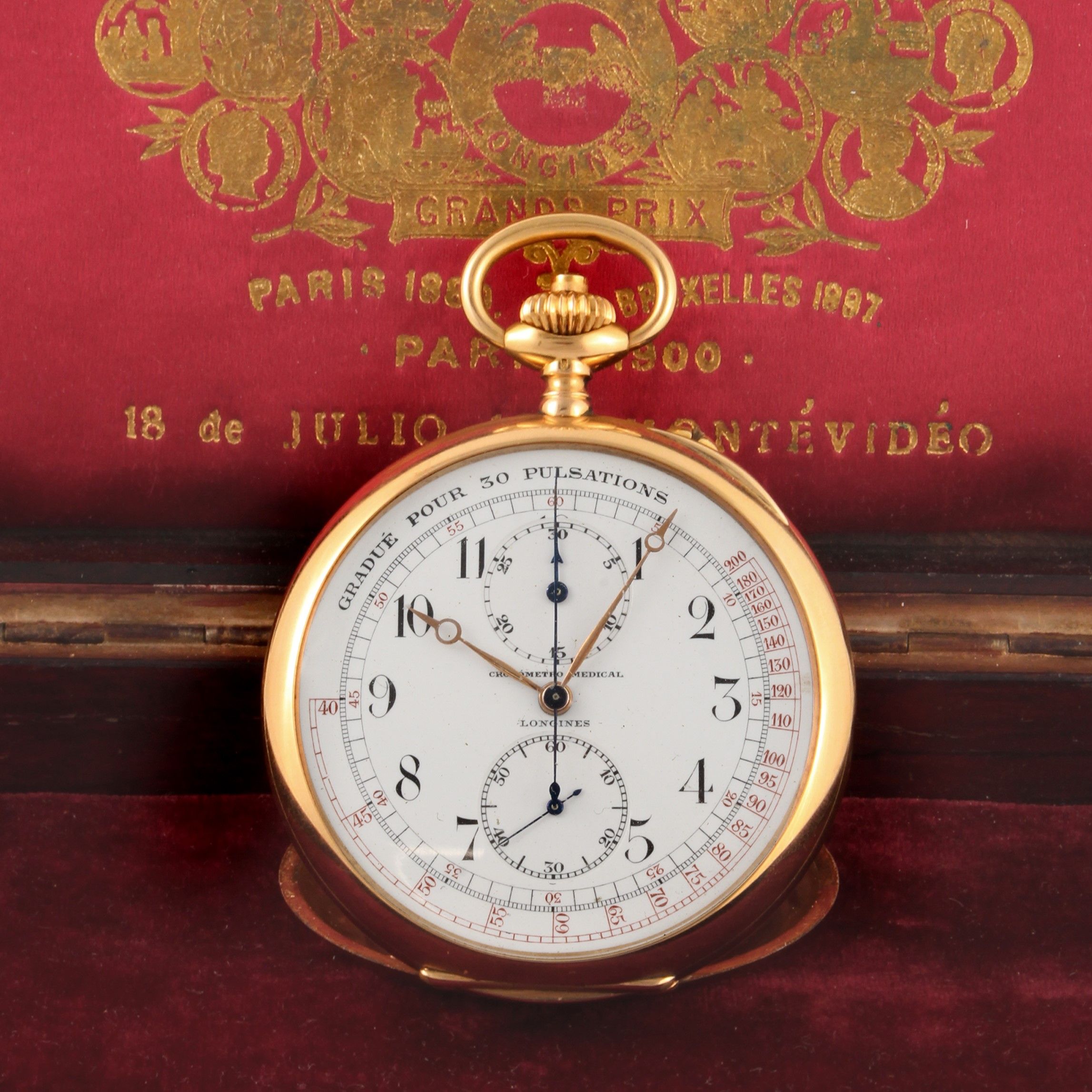 Quadrante: in smalto, numeri Arabi, contatori per i secondi e 30 minuti, scala per le pulsazioni in rosso