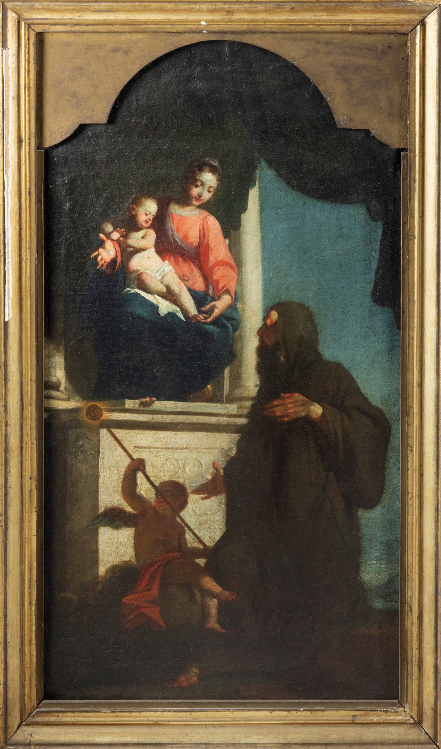 Scuola veneta, secolo XVIII : Madonna con Bambino in trono e Santo  - Asta Dipinti e Disegni Antichi - Associazione Nazionale - Case d'Asta italiane