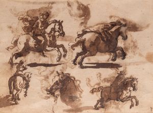 penna e inchiostro bruno acquerellato su carta, mm 195 x 264