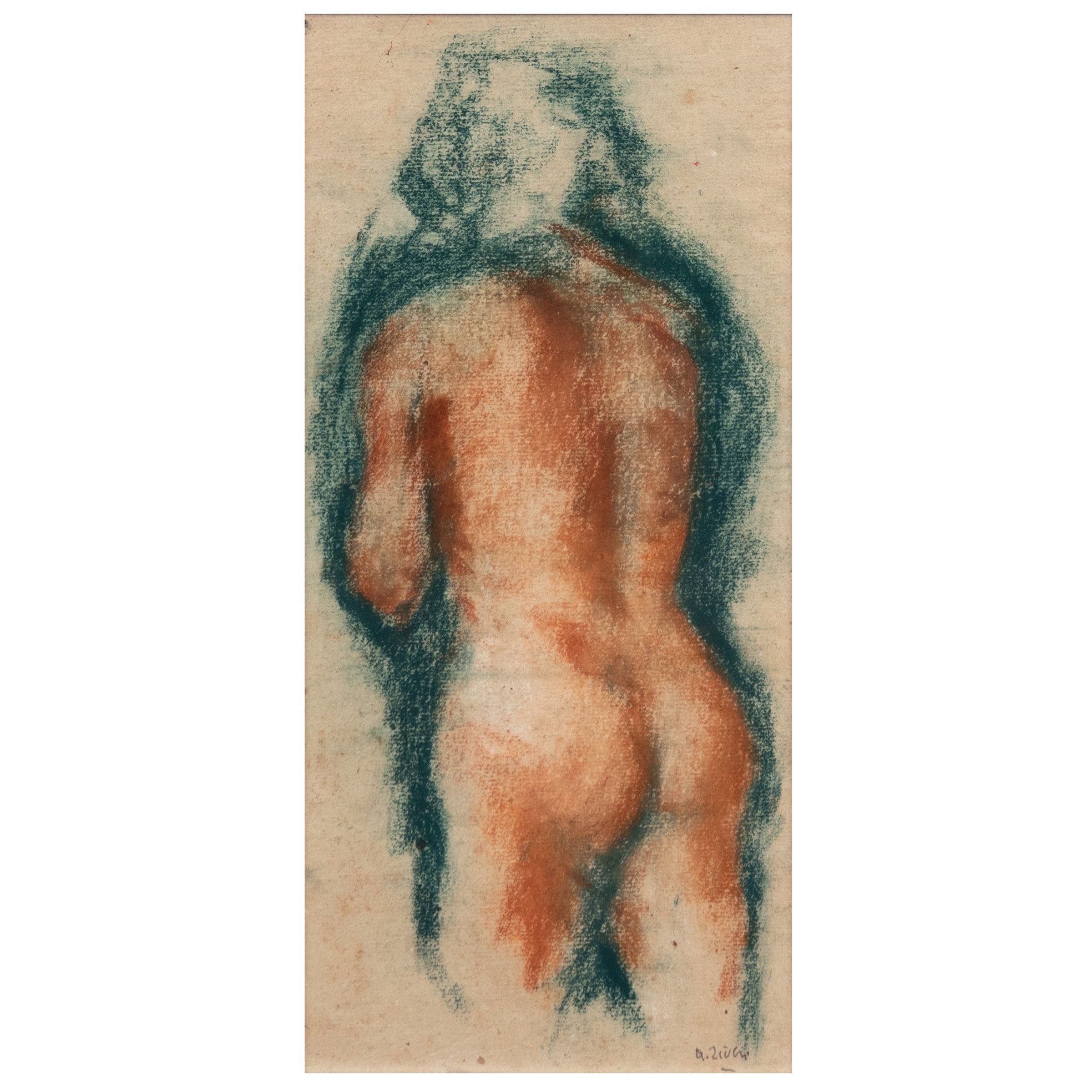 Roma 1908 - 1990 Nudo di schiena, 1933, gessetti colorati su carta intelata, firmato in basso a destra, entro cornice