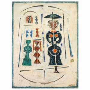 116x89 cm. Berlino 1895 - Saint-Tropez 1971 Composizione con l'ombrellino, 1961, olio su tela, firmato e datato [..]