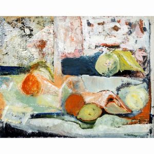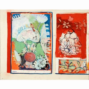 50x70 cm. Rovereto 1903 - Roma 1991 Senza titolo, tecnica mista su cartoncino, firmata in basso a destra, entro [..]