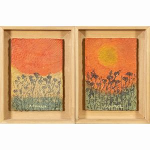 30x60 cm. Chieti 1944 - Roma 2022 L'altro tramonto 1-2, 2021, coppia di acrilici su tela, firmati, datati e titolati [..]