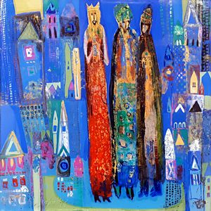 30x72,5 cm. Chieti 1944 - Roma 2022 Il viaggio di Afrodite, 2022, trittico acrilico su tela, firmato, datato [..]