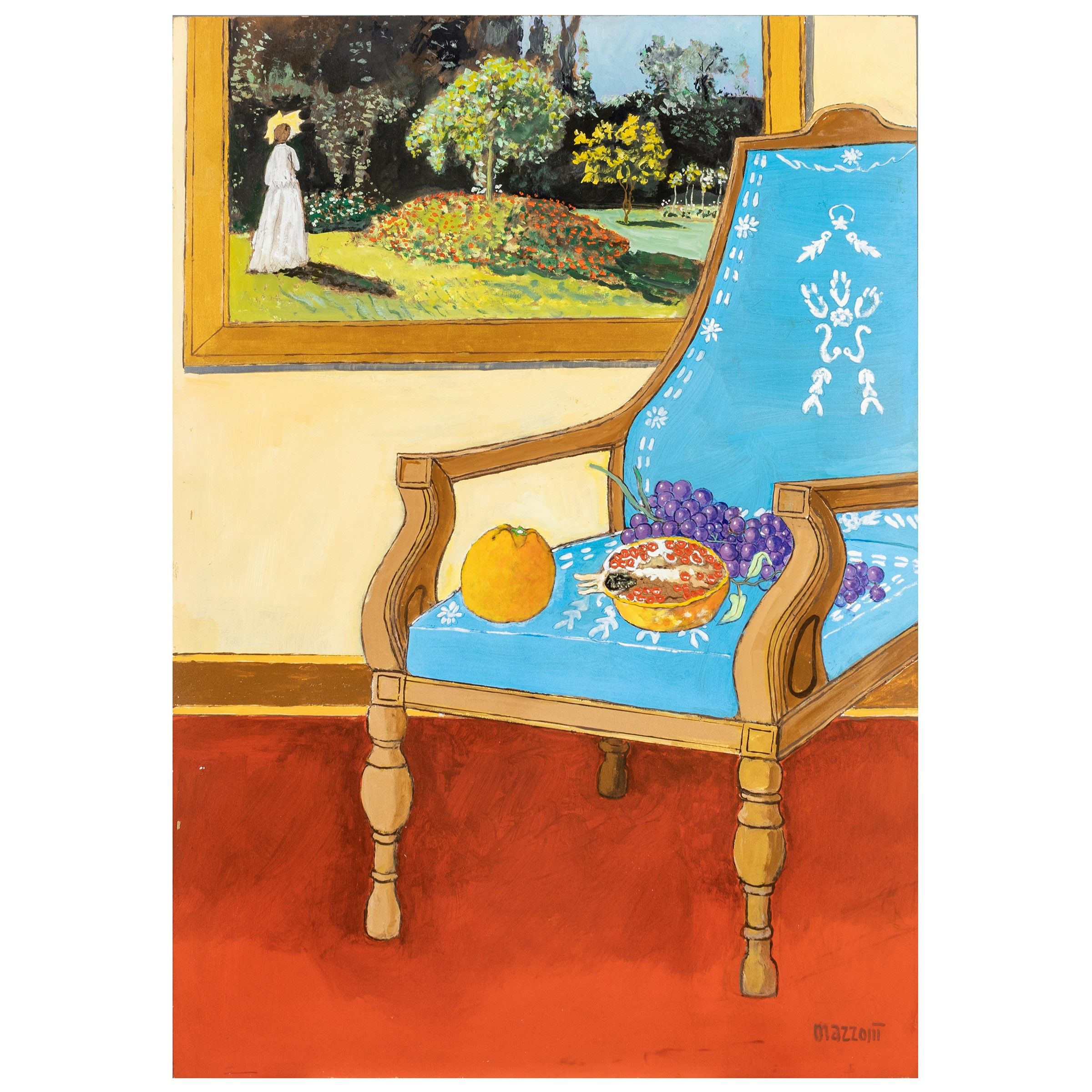 Roma 1922 Un Renoir in salotto, 1998, olio su masonite, firmato in basso a destra, titolato, datato e firmato sul retro, entro cornice