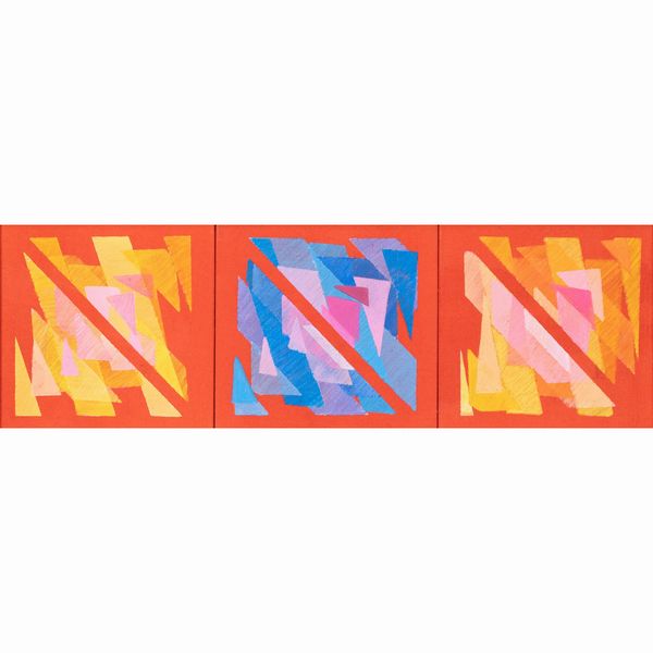 Chieti 1944 - Roma 2022 Volo, 2021, trittico acrilico su tela, firmato, datato e titolato sul retro, entro cornice