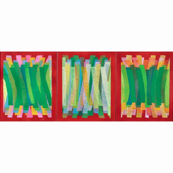 Chieti 1944 - Roma 2022 Il viaggio di Pan 1-2-3, 2022, trittico acrilico su tela, firmato, datato e titolato sul retro, entro cornice