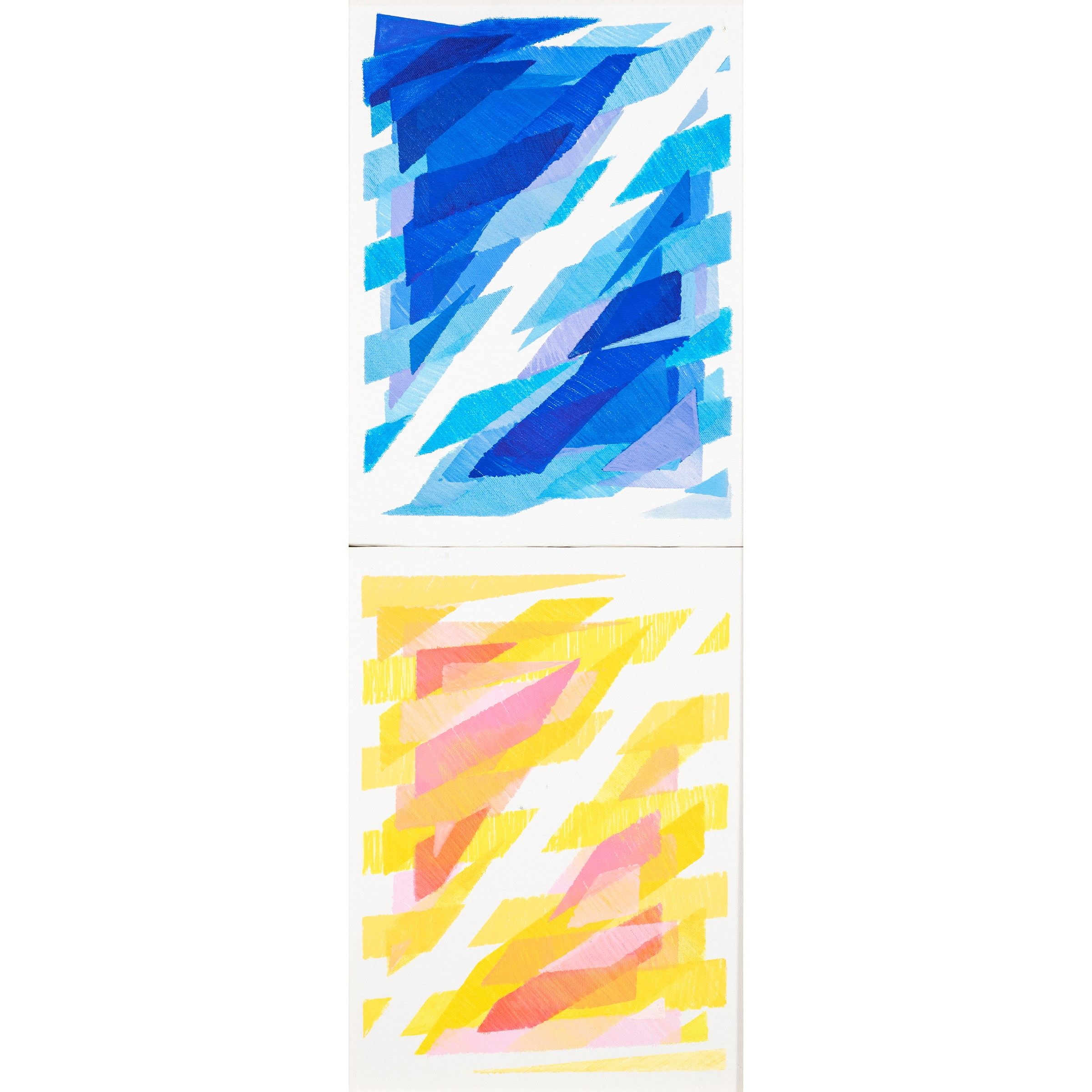 Chieti 1944 - Roma 2022 Leggero cielo - Leggero volo, 2021, dittico acrilico su tela, firmato, datato e titolato sul retro, entro cornice