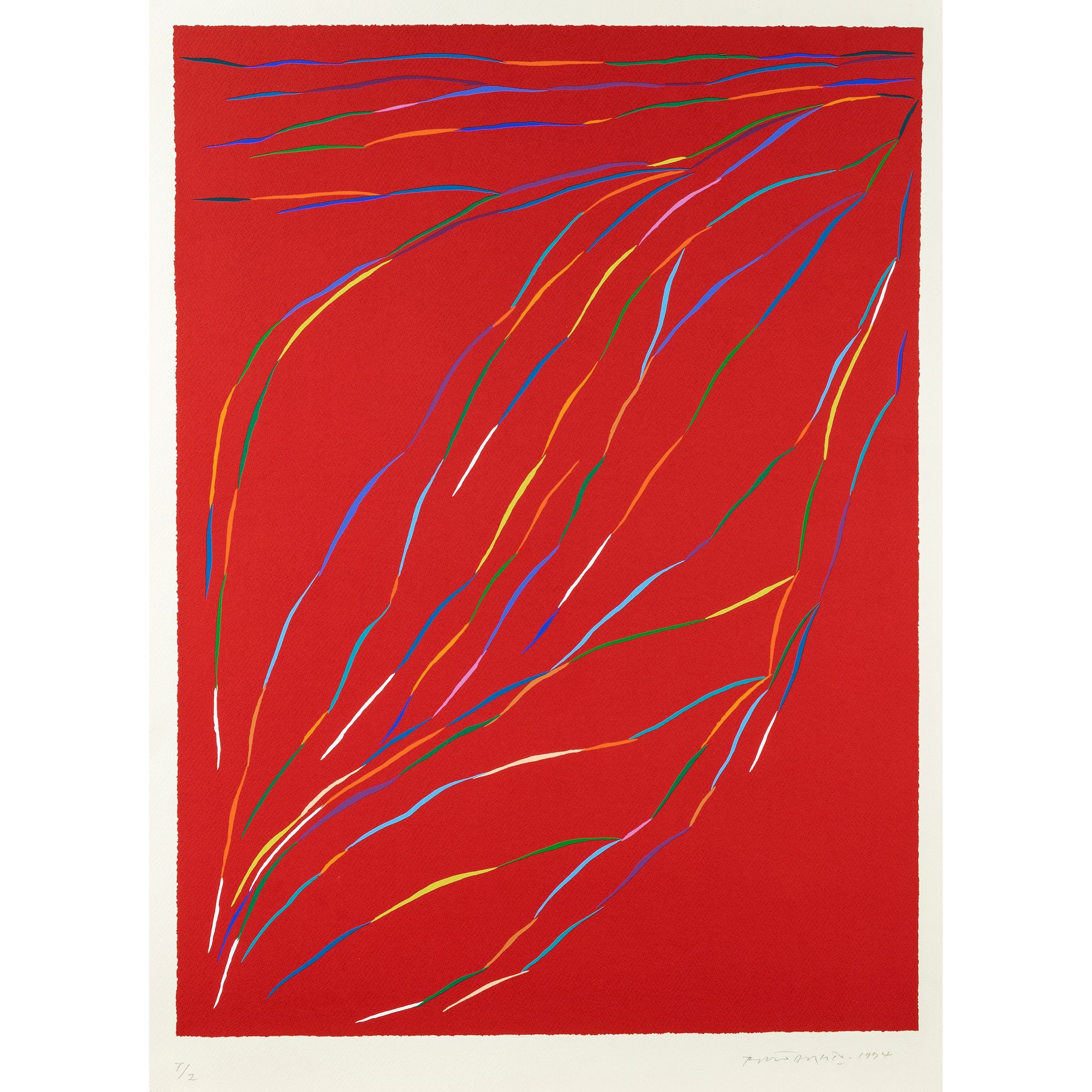 Roma 1927 - Perugia 2005 Senza titolo, 1994, serigrafia a colori, es. T/Z, firmata e datata in basso a destra, timbro a secco Grafiser Stampatore d'Arte, Roma, in basso a sinistra