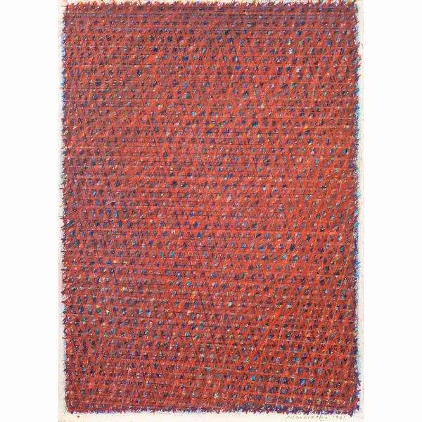 Roma 1927 - Perugia 2005 Reticolo rosso, 1961, tecnica mista su carta intelata, firmata e datata in basso a destra