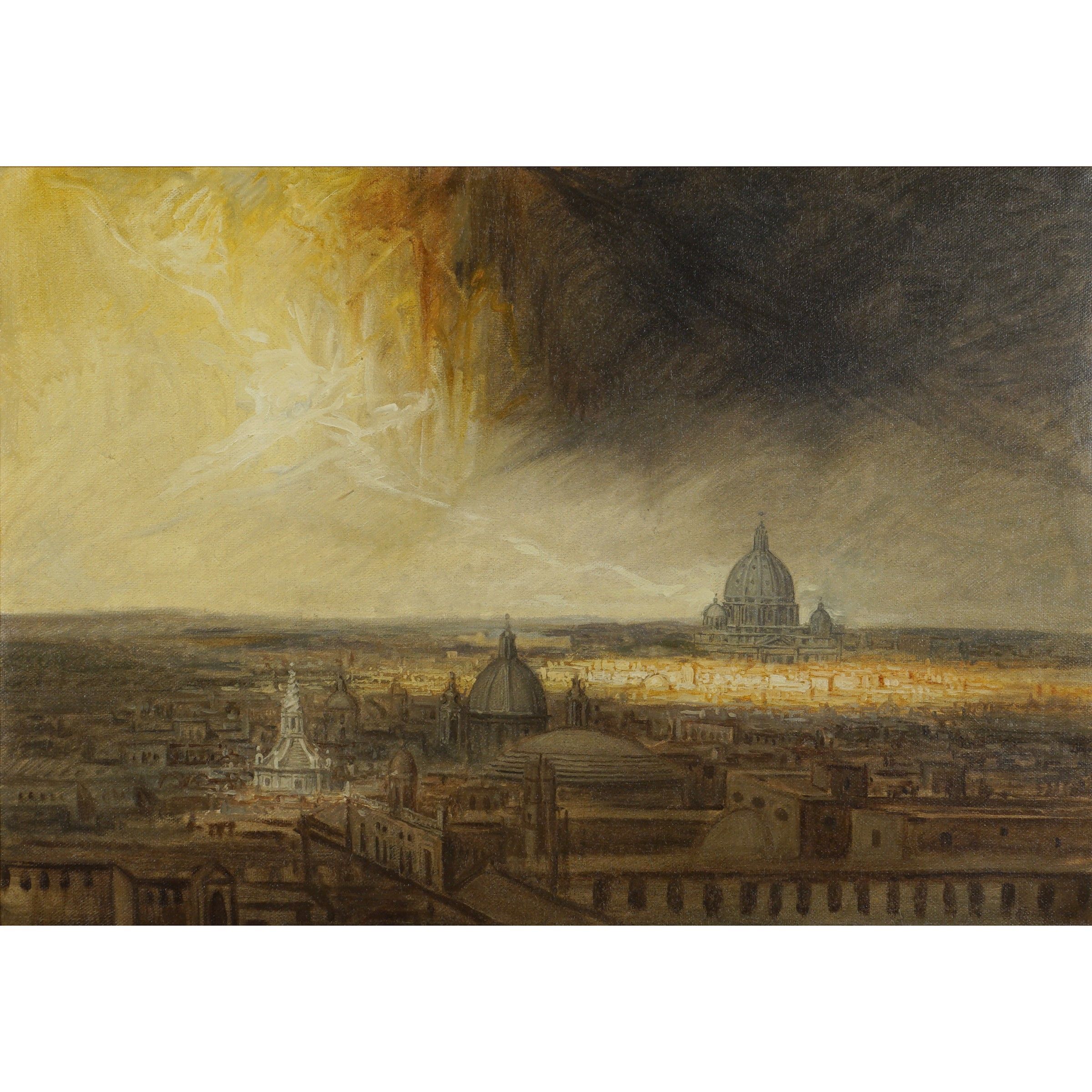 Pietrasanta 1934 - Camaiore 2000 Veduta di Roma con la cupola di San Pietro, olio su tela, firmato in basso a destra, entro cornice