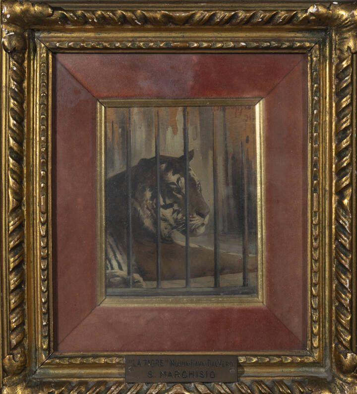 Titolo sulla targhetta metallica applicata alla cornice