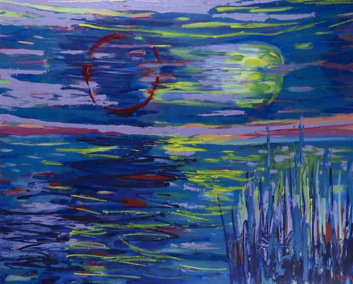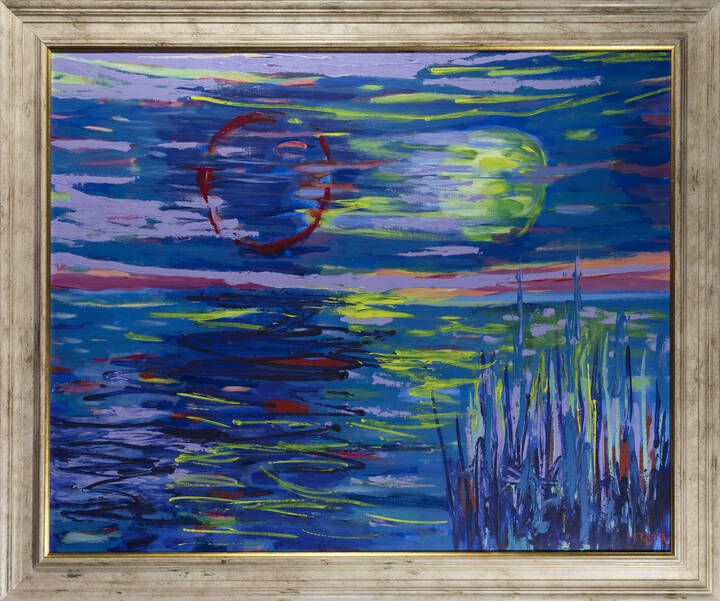 ANTONIO CORPORA Tunisi (Tunisia) 1909 - 2004 Roma L'eclisse 1988 81x100 olio su tela Opera firmata in basso a destra e al retro con data e titolo Opera registrata nell'Archivio Corpora tenuto da Giovanni Di Summa, Roma, con n. 81100/88 OLIT/D/102 su fotografia rilasciata in data 2/11/1998