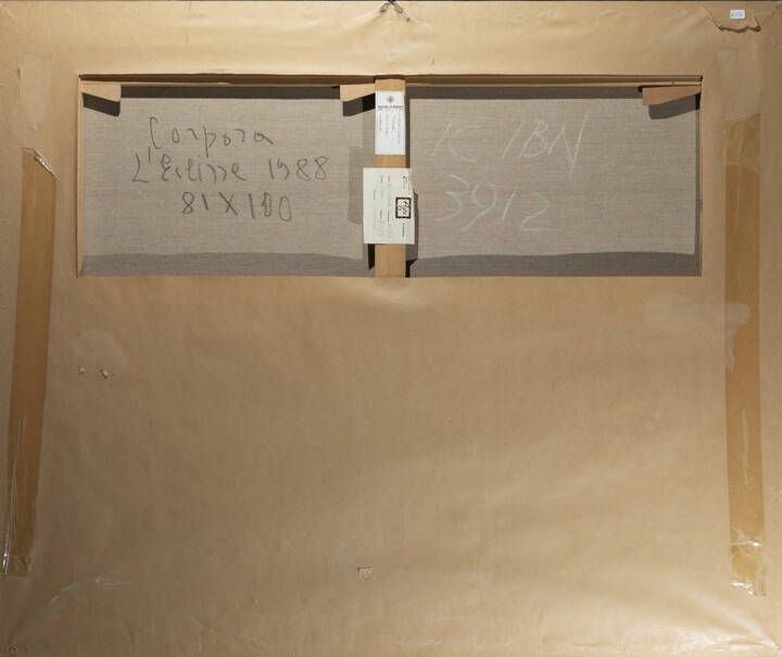 Già Galleria Arte 15, Torino (etichetta al retro) Esp.: - 1988, Torino,, Galleria La Bussola Antonio Corpora - Opere dal 1980 al 1988, ripr. a colori pag. s.n.