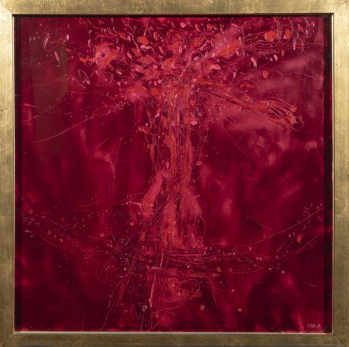 CAMILLO FRANCIA Casale Monferrato (AL) 1955 Le radici dell'albero sono dove la terra ha il cuore 2001 70x70 olio su tela Opera firmata in basso a destra e al retro (sottosopra) con data, titolo e tecnica Esp.: - 2001, Casale (AL), Complesso ex Baronino (indicazione iscritta al retro), sottosopra