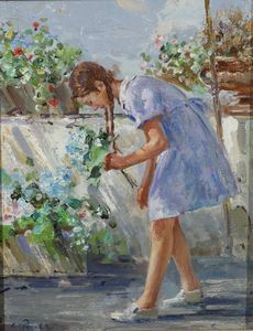 GIOVANNI PANZA Capo Miseno (NA) 1894 - 1989 Bambina in giardino 23,5x18 olio su tavola Opera firmata in basso [..]