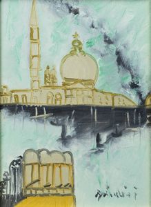 REMO BRINDISI Roma 1918 - 1996 Milano Venezia 40x30 olio su tela Opera firmata in basso a destra e al retro per [..]