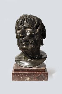 SCULTORE ANONIMO Seneca fine XIX/inizi XX secolo H. cm 33x21x19 circa scultura in bronzo con base in marmo Riproduzione [..]