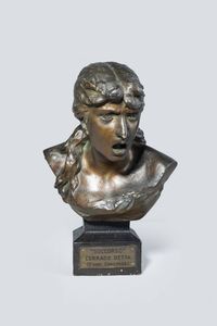 ANTONIO PANDIANI Milano, 1838 – 1928 Busto femminile H. cm 21 scultura in bronzo su colonna in legno (altezza [..]