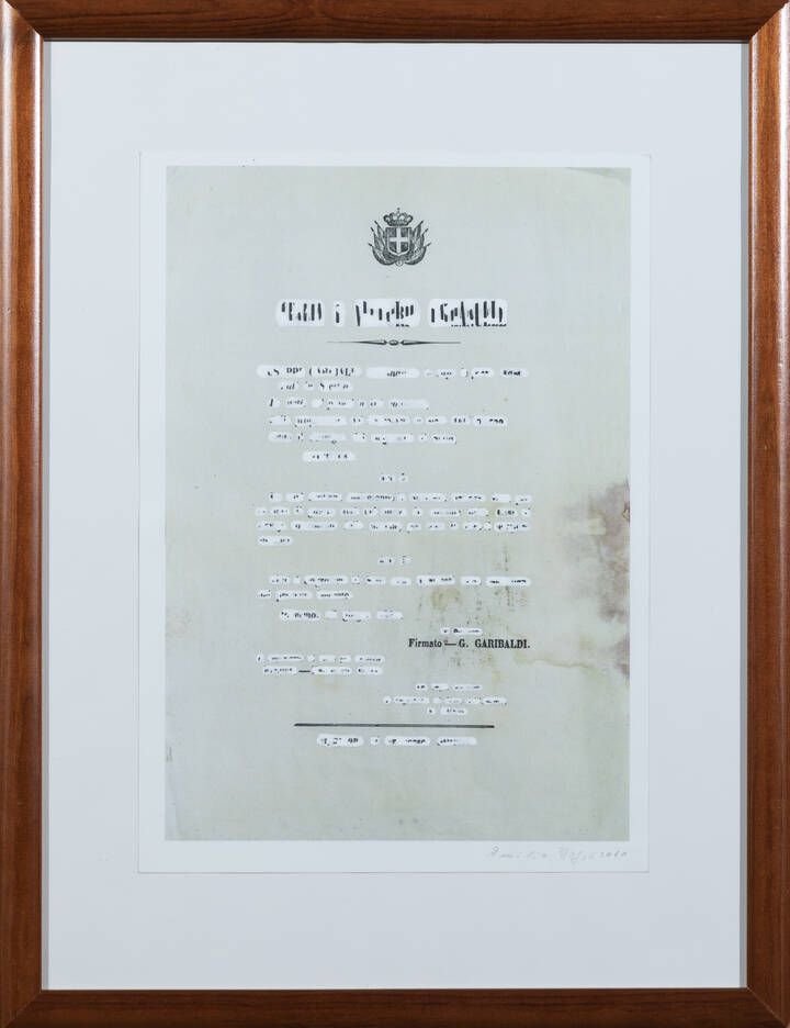 EMILIO ISGRO' Barcellona Pozzo di Gotto (ME) 1937 Progetto di cancellazione per la mostra 'Disobbedisco', 2010 29,5x21 tecnica mista su carta Opera firmata e datata in basso a destra Etichetta al retro recante titolo e data Esp.: - 2012, Torino/Cosenza/Roma Stemperando. Biennale Internazionale di opere d'arte su carta, ripr. p. 54