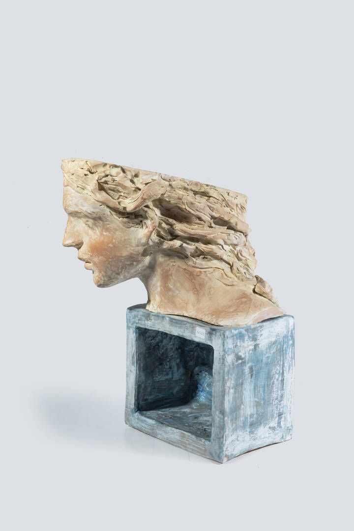 GIOVANNI BNARDI Villaova Monferrato 1958 Cavaliere 2003 H. cm 44,5x32x32 terracotta policroma su base invetriata Oper siglata, datata e timbrata al retro Esp.: - 2003, 25 sttembre/15 novembre, Torino, Muse Egizio, Ostrakon. La memoria dei tempi, Vers9o L'Arte Ed.,ripr. a colori p. 87