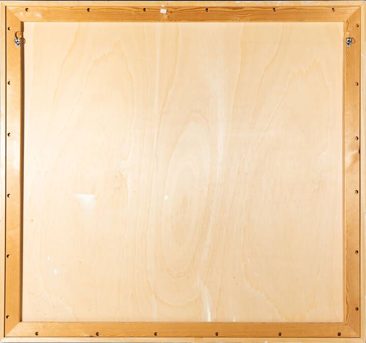 114x122,5 olio e applicazioni su carta applicata su tavola
