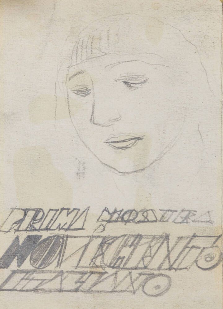 MARIO SIRONI Sassari 1885 - 1961 Milano Bozzetto per il manifesto della prima mostra del Novecento italiano. al verso Altro bozzetto per il manifesto della prima mostra del Novecento italiano 1926 circa 14,6x9,8 matita su carta il recto. matita grassa su carta il verso In basso reca la scritta Prima mostra Novecento italiano La testa virile al retro reca scrtta parzialmente coperta Opera archiviata dall'Associazione per il Patrocinio e la Promozione della Figura e dell'Opera di Mario Sironi, Milano, con il numero 71/23 RA. Al retro etichetta Società per le Belle Arti ed Esposizione Permanente