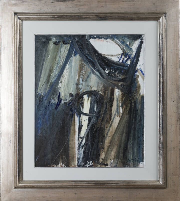 PIERO RUGGERI Torino 1930 - 2009 Figura in nero 1972 48x40 olio su tela Opera firmata in basso a destra e al retro (capovolta) con data Autentica dell'artista su fotografia Già Galleria Accademia, Torino, n. 7209 (etichetta al retro sul telaio e timbro firmato sulla tela)
