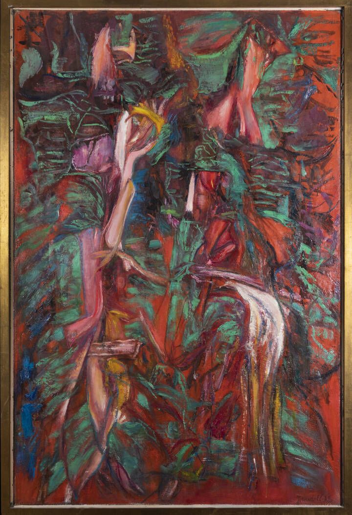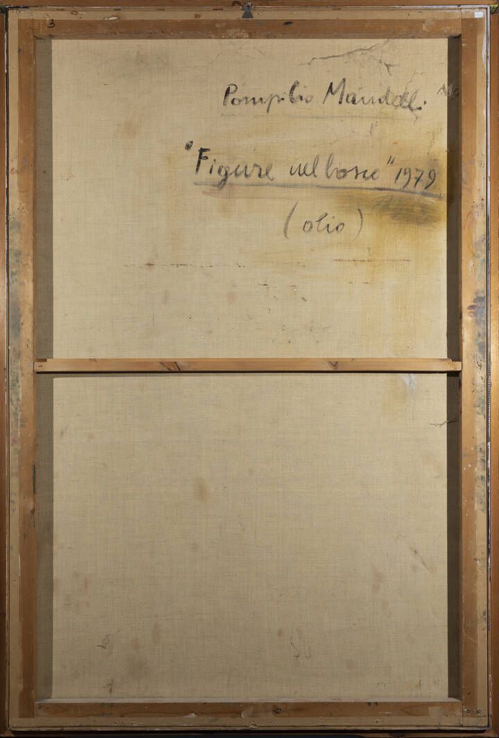 POMPILIO MANDELLI Villarotta di Luzzara (RE) 1912 - 2006 Bologna Figure nel bosco 1979 180x120 olio su tela Opera firmata e datata in basso a destra e al retro con titolo Autentica dell'artista su fotografia rilasciata a Bologna in data 15 nov.1979, recante titolo, misure, tecnica e data (1978-79)