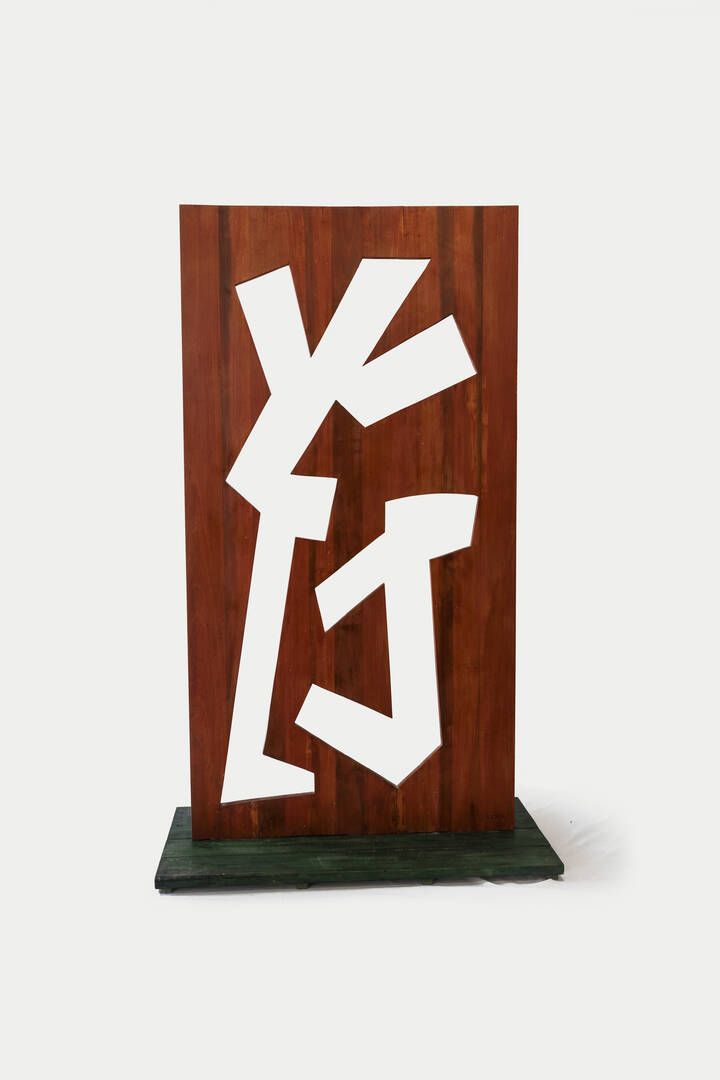 RICCARDO LICATA Torino 1929 - 2014 Venezia Plaisir d'amour 2001 H. cm 206x120x67 scultura in legno Opera firmata alla base a destra Autentica dell'artista su fotografia Bibl.. - Licata - Il giardino abitato a cura di Giovanna Barbero, ed. Verso L'Arte, II ed. ripr. a colori p. non numerata