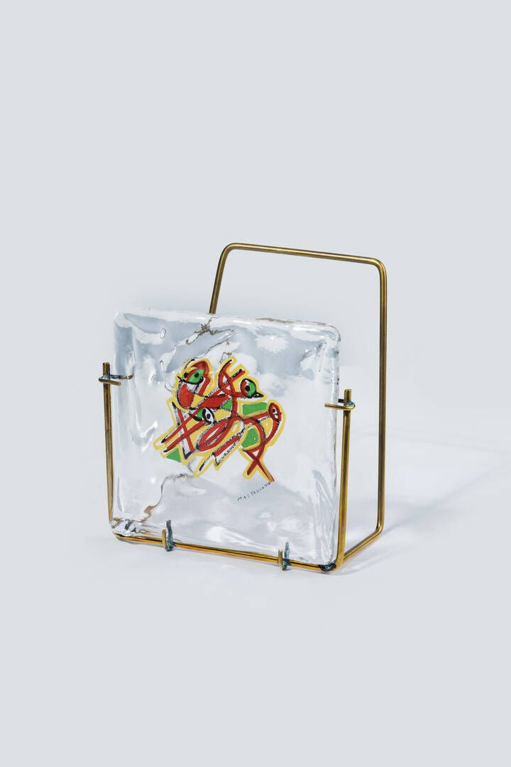 H. cm 13x13 portatovaglioli con parte anteriore in vetro dipinto
