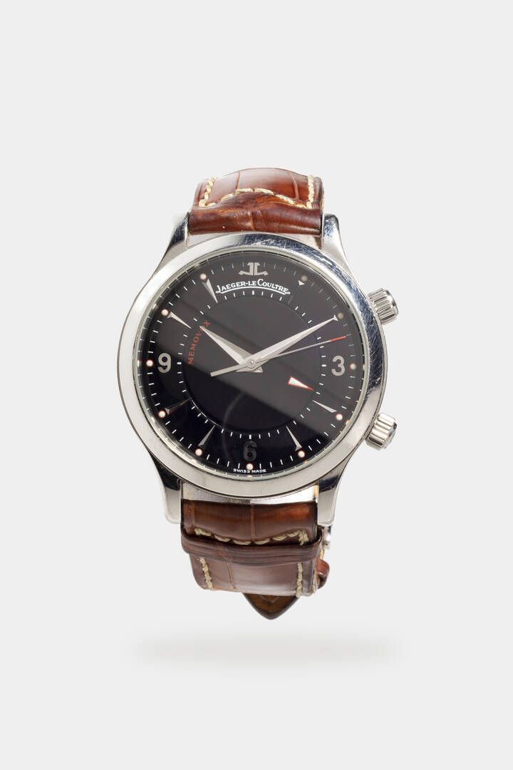 JAEGER LE COULTRE Mod. Memovox, ref. 144.8.94.S, serie recente Diam. 36 mm Cassa in acciaio con fondello in vetro e doppia corona. Quadrante nero con indici geometrici applicati e numeri arabi ai quarti. Movimento a carica manuale cal. 914. Corredato di scatola e garanzia.