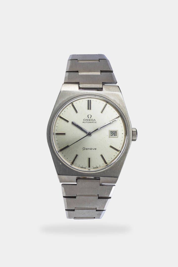 Mod. Solo Tempo, ref. 1660099, anni '70 Diam. 35 mm Cassa in acciaio con fondello a vite. Quadrante argento con indici geometrici applicati, indicazione dei secondi continui al centro e datario al 3. Bracciale in acciaio integrato con chiusura clasp. Movimento a carica automatica cal.1481.