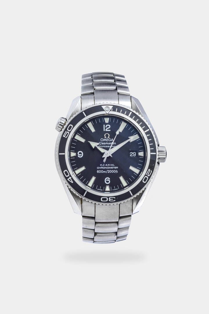 OMEGA Mod. Seamster 600 Planet Ocean, ref.1681651, serie recente. Diam. 42 mm Cassa in acciaio con fondello a vite. lunetta girevole monodirezionale nera e valvola elio ad ore 10. Quadrante nero con indici luminescenti geometrici applicati e datario al 3. Presente maglia aggiuntiva. Movimento a carica automatica cal. 2500 Coaxial. Corredato di scatola.