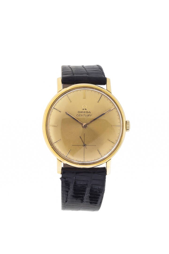 OMEGA Mod. Century, ref.121.014, anni '60. Diam. 34 mm Cassa in oro con fondello a pressione. Quadrante champagne con indici geometrici applicati ed indicazione dei secondi continui ad ore 6. Meccanismo a carica manuale cal.269.