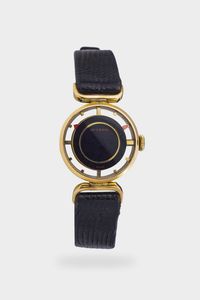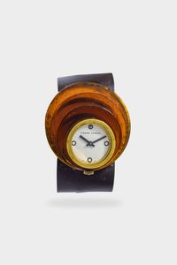 PIERRE CARDIN Mod. Espace, anni '70 Diam. 44 mm Cassa placcata incastonata in una struttura in bachelite color [..]