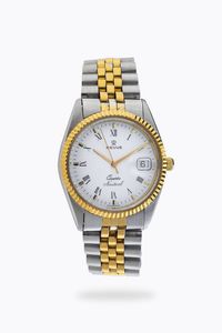 REVUE Mod. Solo tempo, anni '90 Diam. 36 mm Cassa in acciaio con fondello a vite e lunetta dorata godronata. Quadrante [..]