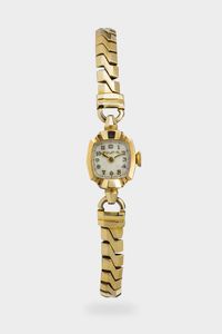 BULOVA Mod. Lady Dress Watch, anni '50 14x17 mm Cassa in oro 14 Kt con fondello a pressione. Quadrante argento [..]