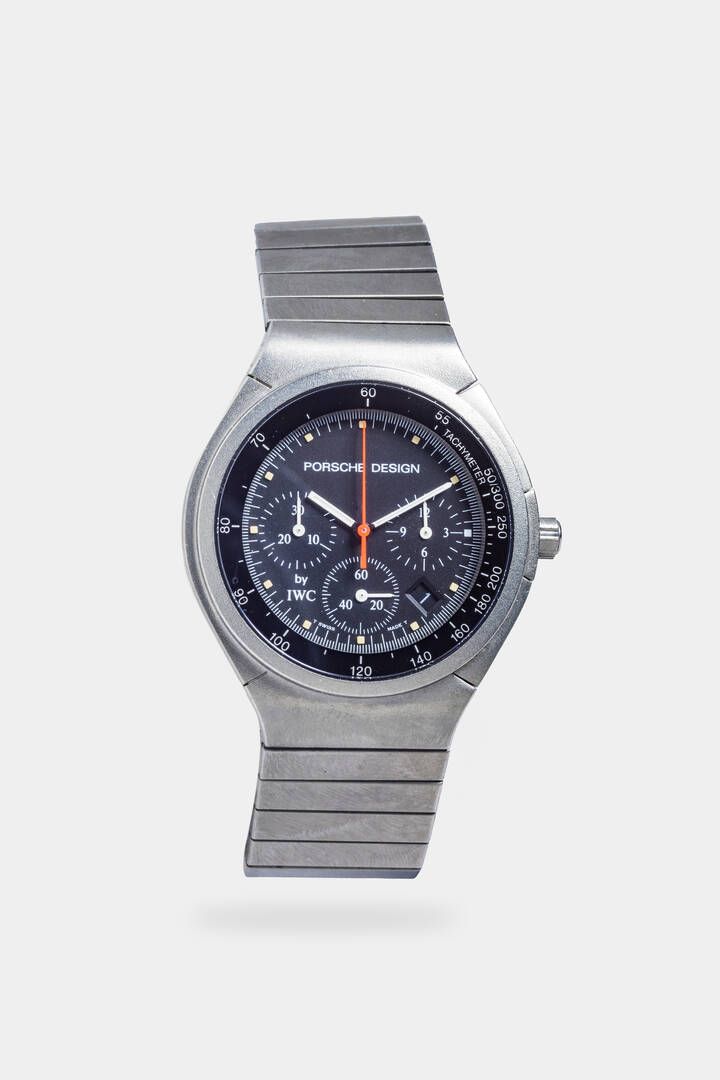 PORCHE DESIGN Mod. Chronograph, ref.3732, anni '90 Diam. 36 mm Cassa in titanio con fondello a vite e tasti della cronografia integrati nella carrure della cassa. Quadrante nero con indici geometrici luminescenti e datario al 5. Al 3 subcontatore delle 12 ore, al 6 quello dei secondi continui ed al 9 quello dei 30 minuti cronografici. Bracciale in titanio integrato con chiusura a scomparsa. Movimento al quarzo.