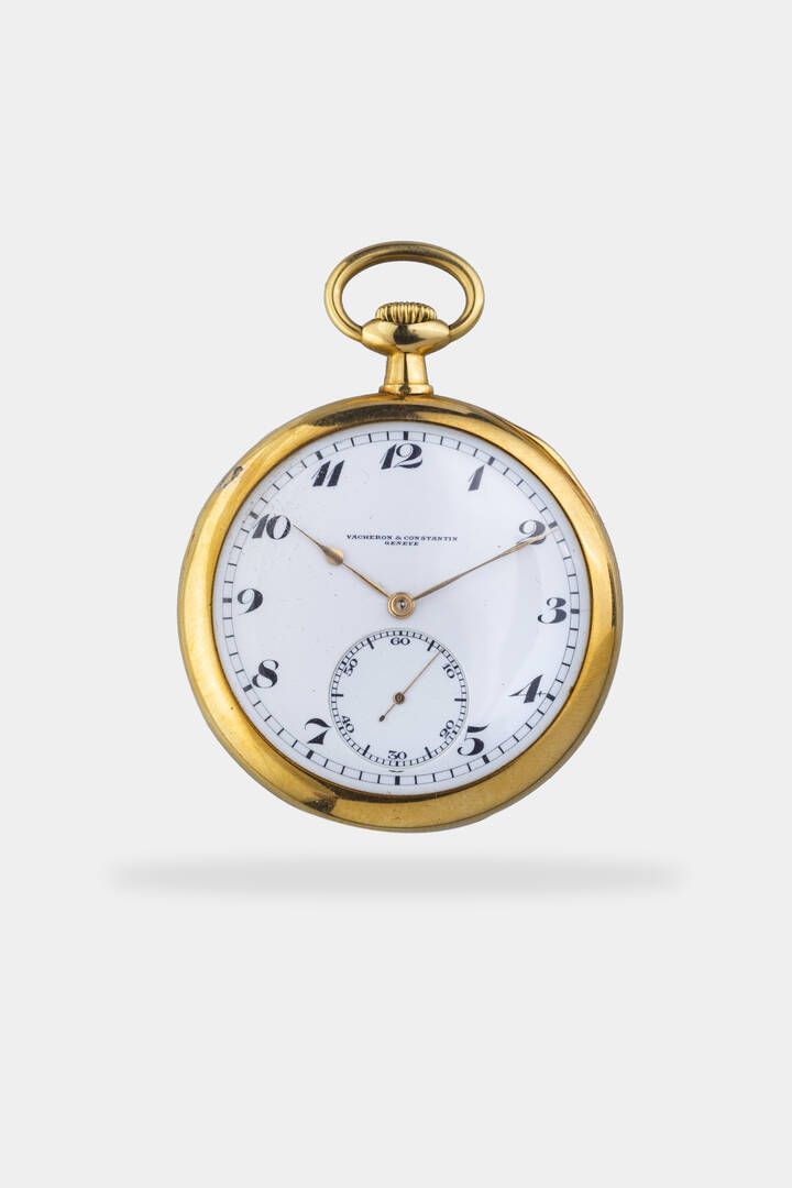 VACHERON & CONSTANTIN Mod. Pocket Watch, inizi XX secolo Diam. 49 mm Cassa in oro con fondello a scatto. Quadrante bianco con numeri Breguet serigrafati ed indicazione dei secondi continui al 6. Movimento a carica manuale. Corredato di garanzia e scatola dell'epoca.